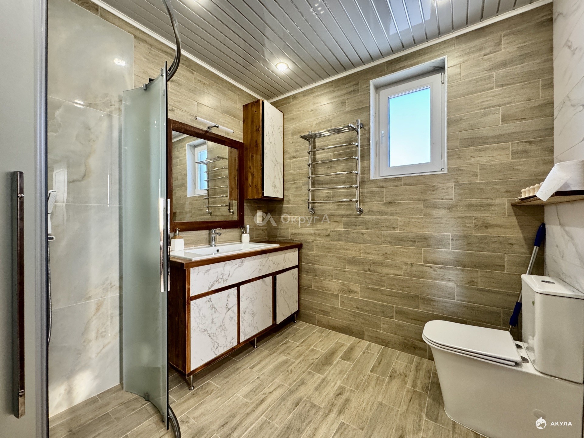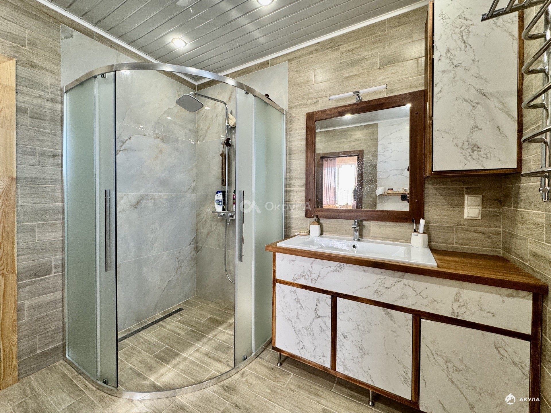санузел с большой душевой кабиной и тропическим душем