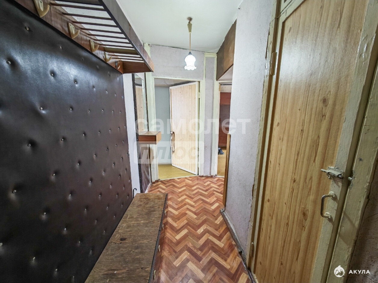 Двухкомнатная. Просторная. Светлая. Металлическая входная дверь. Комнаты изолированные. Окна выходят на обе стороны дома. На полу постелен линолеум. Потолки покрашены. На стенах обои. Везде пластиковые окна. Стандартная кухня. Газ. Горячая вода (без газовой колонки). Раздельный с/узел. Балкон. Кладовка.